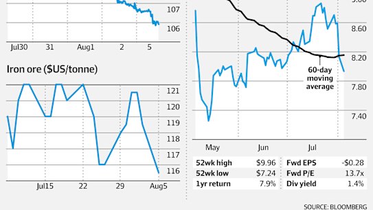 The major miners led the market losses this week as bulk and industrial metal prices were sent tumbling over trade war concerns. BHP Group fell 4.1 per cent to $37.20, Rio Tinto dropped 4.2 per cent to $87.64 and Fortescue Metals Group slid 5 per cent to $7.26.