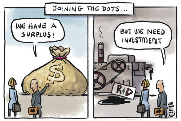 Now here’s the killer: but also because, particularly since the end of the mining investment boom a decade ago, we’ve been investing a lot less in improving and expanding our businesses.