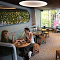 This fun, airy, light-filled 200-seat hotel rooftop bar blends inside and outside beautifully.