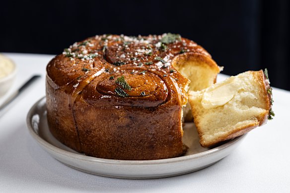 The bread is free but good enough to pay for: fluffy, crown-shaped brioche is brushed with a sticky caramel made from reduced vegetable scraps.