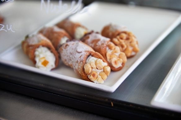 More than 50 panino options have been created for Arno over the past four years, and about 16 of those are available each day. My favourite might be the avocado and cucumber number with thin-sliced apple, guindilla peppers, shredded iceberg and gorgonzola-sharpened ranch dressing. Praise be to the chicken parm, too, featuring a fat schnitzel draped in smoked provolone with sugo, Calabrian chilli and a light snowfall of parmigiano.