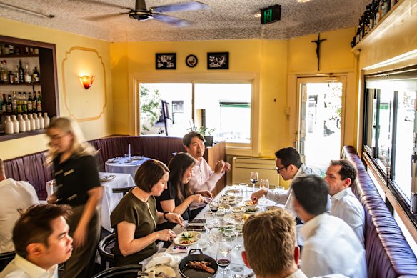 A word on the floor team here at this newly restored Italian restaurant, where a $24 Melbourne Bitter longneck is served with the same level of skill, panache and care as a $500 bottle of Egly-Ouriet premier cru. Staff will serve that beer iced in its own bucket. Pour it into short glasses with the right amount of head. Top up as needed. That’s serious hospitality.