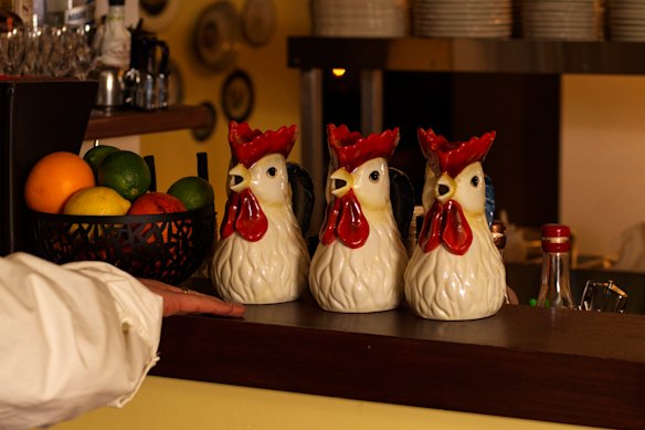 The space has been updated enough to make it feel like a new restaurant, but not so much that it might scare away Bar Vincent die-hards. Daffodil-yellow out the front for sun-dappled relaxation, Mediterranean-blue out the back for dimly-lit trysts. A picture rail lining the dining room is dotted with bottles, tchotchkes, old framed photos and decorative plates. It’s like visiting someone’s European grandparents – if they had great taste in wine and enjoyed listening to The Cure.