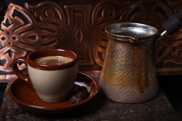 It’s a transportive experience sitting in this sweet-smelling, linen curtain-framed parcel of a bakery cafe with walls decorated with Iranian embroidered wall art and shelves of Iranian fig marmalade, sour cherry and orange blossom jams and Persian loose tea mixed with rose petals.
