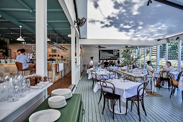 The Corner is a partnership between Kane and The Boathouse Group, which also operates Barrenjoey House and several other coastal venues of varying (but rarely notable) quality. It’s in the bright white weatherboard mega-cottage that once housed The Boathouse homewares store, and eating inside the bistro space can feel like dining at an island resort, albeit one that plays Neil Young, Big Star and The Beta Band. There are linen tablecloths, a fiddle leaf fig and wicker-blade fans. The “grocer” section is coloured with organic fruit and vegetables for anyone inclined to drop $5 on a peach or $1.60 on a wax-free lemon.