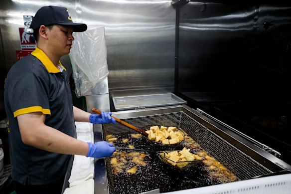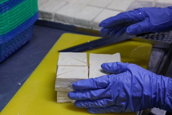 The kiosk, inside a Westfield, has fast-food-style efficiency even though everything is artisanally prepared on site. “You can’t make good tofu using machines,” says Ly. “It’s all done by hand.” From soaking soybeans to frying curds until they puff, the process takes about nine hours and you can watch staff prep tofu before you buy pieces by the kilo. I’ve tried the plain blocks, which I’ve simply seasoned with soy sauce at home and tofu “chips” I’ve added to stir-fries. But the tofu triangles, which are so snackable and spongey, are my outright favourite. Eat them fresh out of the bag.