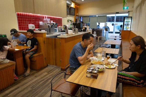 The range of desserts almost outweighs the savouries. Caramel toasts crowned with everything from bananas to pandan custard to Thai tea ice-cream are crowd favourites, but on a hot day, it’s hard to go past the bingsu. Fresh fruit cups tumbled with chilli powder are also available, a nod to Young’s memories of childhood.