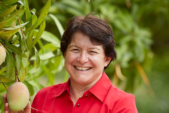 Naturally, 58-year-old Marie Piccone does have half a mango she grew for dessert.