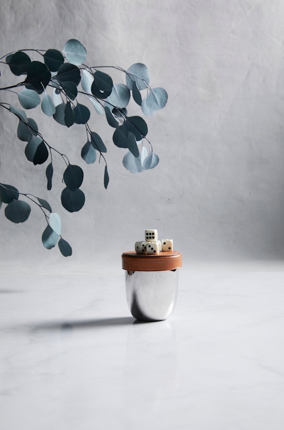 Georg Jensen “Sky” cup and dice, $125.