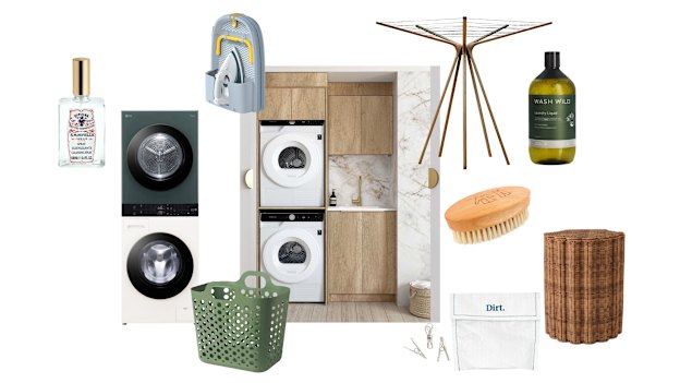 Where to buy: LG “Wash Tower” washing machine and tumble dryer, $3999; Joseph Joseph “Pocket Plus” folding ironing board, $170; IKEA “Slibb” laundry basket, $7.