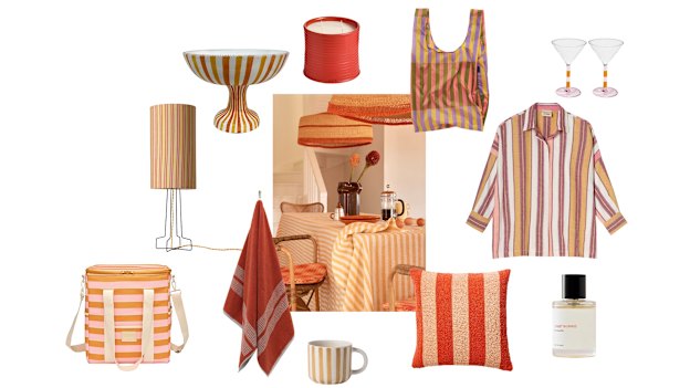 Combine warm tones with stripes of all shapes and sizes for a chic look with seasonal appeal.