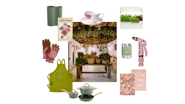Where to buy: Adairs x Cungelella Art tea towels, $30 (set of two). Key piece Grow your favourite greens all year round in Vegepod’s self-watering “Kitchen Garden” ($349). L’Occitane “Harmony” soap, $19. Garden Glory “Rusty Rose” spray gun, $149.