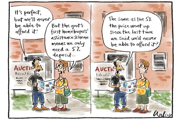 Elizabeth Knight’s excellent article exposes the folly of the government’s approach to housing (“House prices are going up and the banks are going to war”, October 2). Trumpeting the new first home buyers scheme, the government claims it will increase house prices by a modest 0.5 per cent over five years, yet on the same day as the scheme launched, industry figures show a 0.9 per cent increase in September alone and an annual increase of 4.9 per cent. As Knight points out, the scheme coincides with the arrival of a fifth major player in the housing finance sector, which will only fuel demand. Meanwhile, the government’s national housing accord of building 1.2 million homes by 2029 has fallen further into decline, with August building approvals falling by 6 per cent after a 10 per cent decline in July. Even the RBA governor is admitting supply is failing to meet demand. The government is boosting one side of the equation and failing on the other. Existing homeowners are the winners, while aspiring entrants to the housing market can only look on in despair. Mike Kenneally, Manly