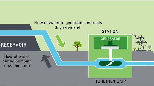 The ANU September 2017 study found many “pumped hydro sites”, where water is pumped uphill from one reservoir then released downhill through turbines back to that reservoir to generate electricity.