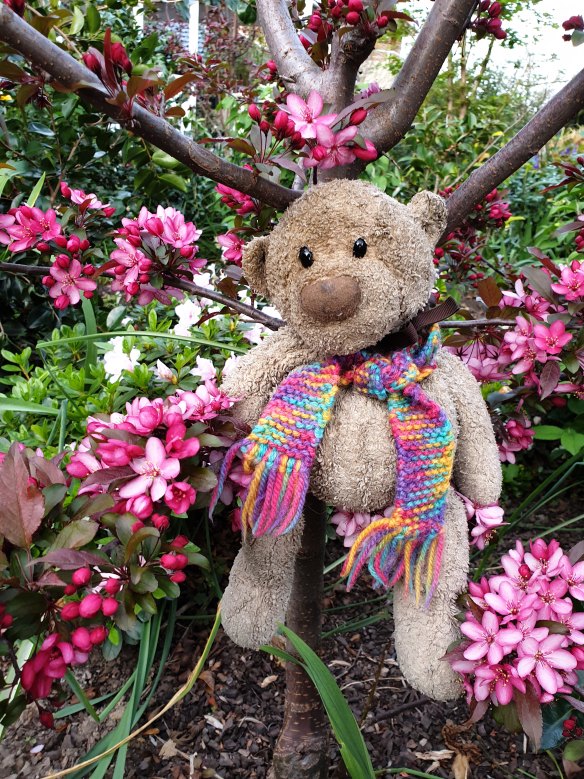 We couldn't go to the annual tulip festival this year, so instead, l brought the tulip festival to my front driveway. I actually have gone a bit crazy with bulbs, with iris being the hit of spring this year. My daughter and l also took the bears into the garden. The bear loves tulips and crabapples. - Megan Anderson