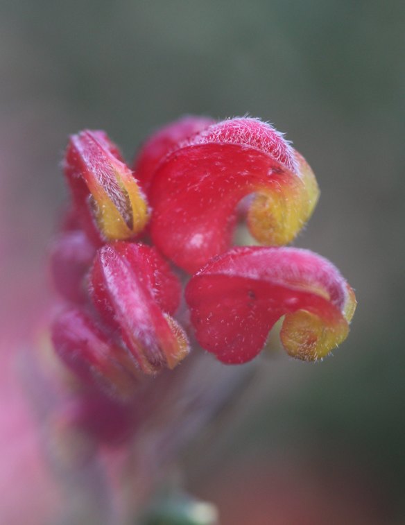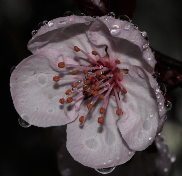 Spring time in Ferntree Gully, with raindrops on a flowering cherry, and Grevillea blooms. - Ross Chapman