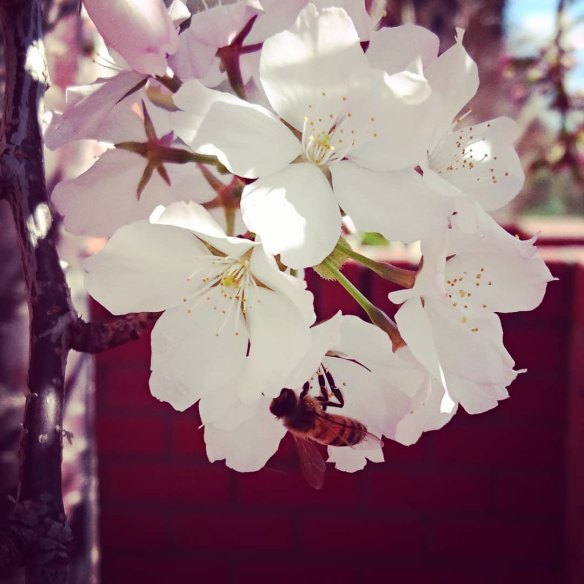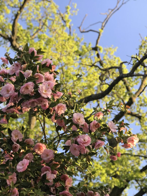 The cherry blossom planted for my daughter's wedding always heralds a new beginning. This year its promise is more important than ever, when will I see her again? The flowers are luminous in the late afternoon light. - Jo