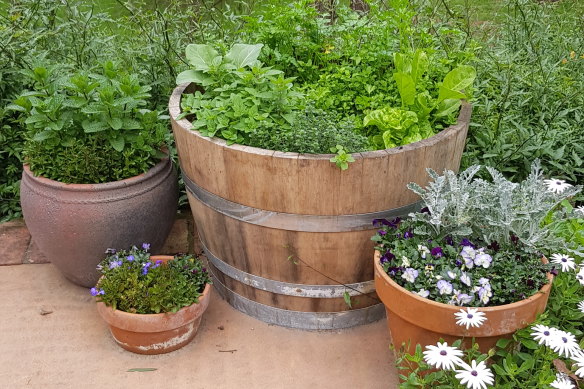 We've made a self-wicking herb garden in a barrel. - Lucy Anderson