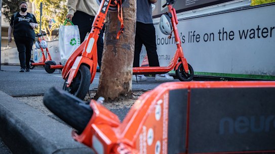 He said Melbourne’s trial of e-scooters continued to be plagued by illegal behaviour, including the devices being ridden dangerously along footpaths despite it being against the law and devices left strewn underfoot, putting the most vulnerable at risk.