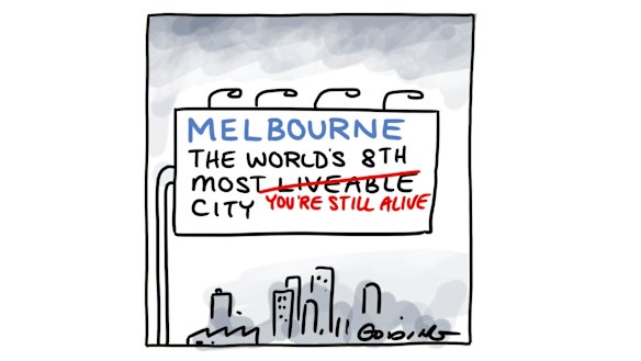 I’ll leave you with an offering from our excellent cartoonist Matt Golding reflecting on the news that Melbourne has slipped down the ranks of The Economist’s ‘Most Liveable Cities’.