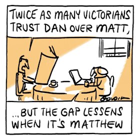 Twice as many voters trust Victorian Labor to govern with integrity compared with the Coalition, and the recent donor scandal and Scott Morrison’s multiple ministerial appointments are damaging the state opposition’s chances before the November election.