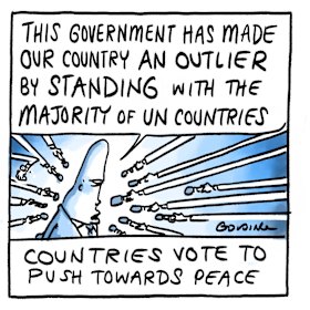 As revealed by this masthead on Tuesday night, the government angered Israel by voting in favour of a United Nations resolution demanding Israel end its presence in the occupied Palestinian territories as soon as possible and calling for the evacuation of all settlers from the West Bank and Gaza.