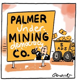 The Sydney Morning Herald and The Age reported on Monday that Mr Palmer’s UAP had spent $31 million on ads over the past six months – more than 100 times the amount spent by Labor or the Liberals in the same period.