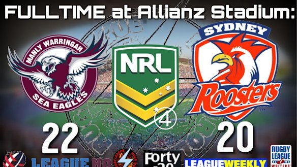 Fulltime at Allianz Stadium: MANLY 22 SYDNEY ROOSTERS 20