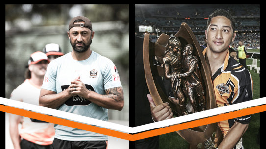 Benji Marshall was in tears watching Wests Tigers debutant five-eighth Lachie Galvin being presented with his jersey by his family, only for those emotions to quickly turn to frustration when questioned about his coaching work ethic.
