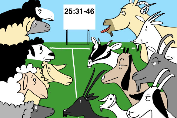 When it comes to outlandishness, presentism can also work in reverse. In managing only to beat Portugal and Georgia, the 2023 World Cup Wallabies are the worst of all time, the WOATs. When the Wests Tigers lost by 74 points to the Cowboys in round 18 this year, they cemented their place as the biggest losers (BLOATs) in the NRL era of rugby league. The all-time longest losing streak in the NBA was 28 games from a recent Philadelphia 76ers team. Golfer Lee Westwood has played, by a mile, the most major tournaments (91) without winning – which doesn’t make him a big loser, but it does make him the most easily forgiven rebel to join LIV Golf, which is the greediest of all time (GROAT).