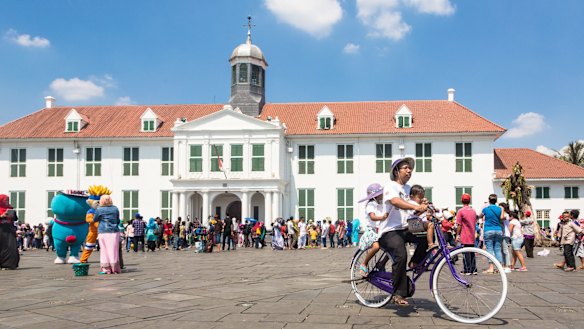 Fatahillah Square in the Old Town neighbourhood is the place to go if you want to see the locals at play, especially on a weekend. Full of picnicking parents, funky teenagers and even younger kids wobbling around on eye-wincingly bright-pink hired bicycles, it's fun and friendly and frenetic. You will be approached by shockingly polite students eager to practise their English or complete homework assignments. Take the time to stop and chat. See indonesia-tourism.com/jakarta