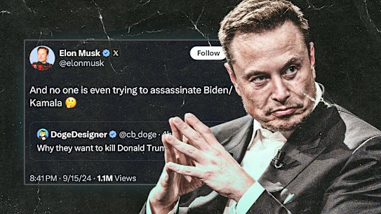 Elon Musk, the demagogic tech bro who owns that platform, could not resist the urge to insert himself into this miasma. In between labelling the Albanese government “far-left fascists” for proposing legislation aimed at curbing misinformation spread by social media, he posted (and later deleted): “no one is even trying to assassinate Biden/Kamala”.